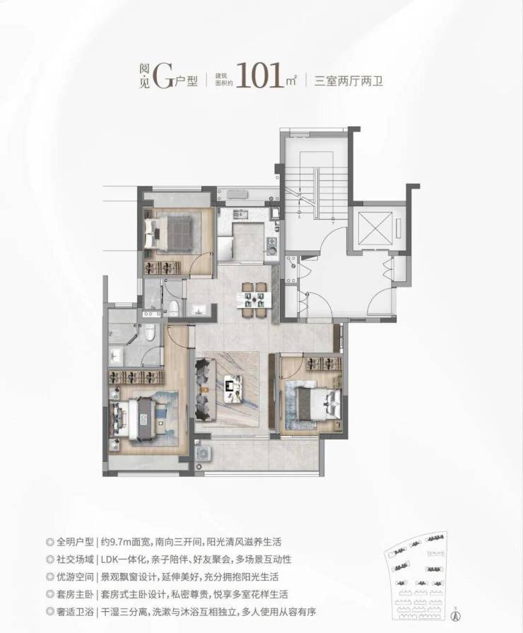 但是在尺度感上更进一步,南向面宽做到了惊人的约9.7米,让业主起居更加从容.